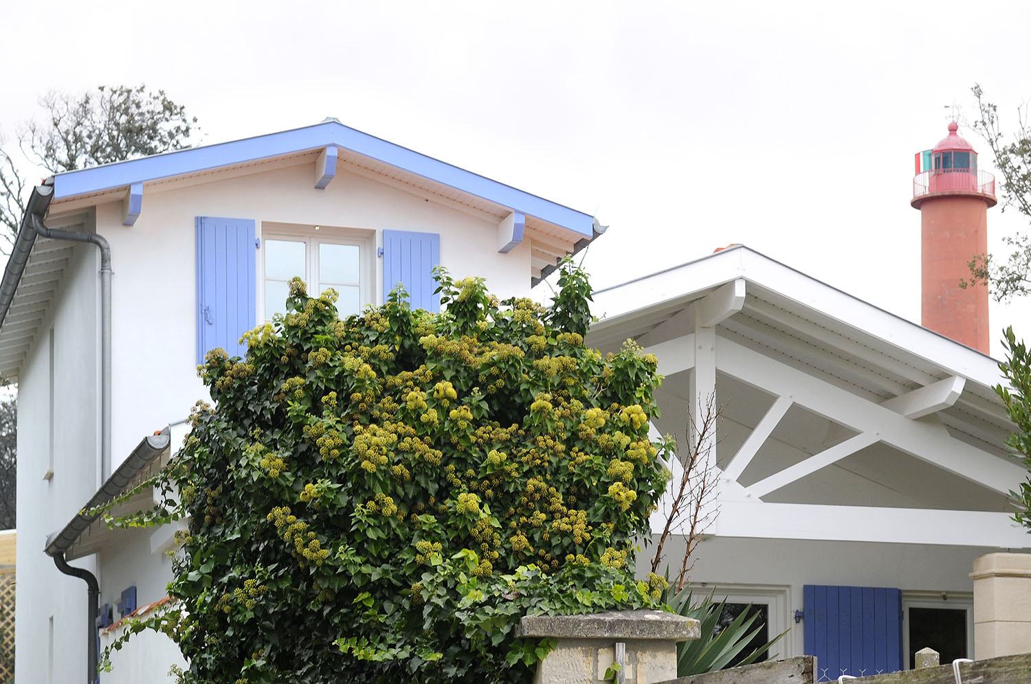 Nous avons dû prendre en compte le contexte très règlementaire (respect de l’architecture balnéaire, double affichage du permis de construire) ainsi que les contraintes de voisinage liées à l’allée privée qui longe la maison et qui appartient aux riverains.