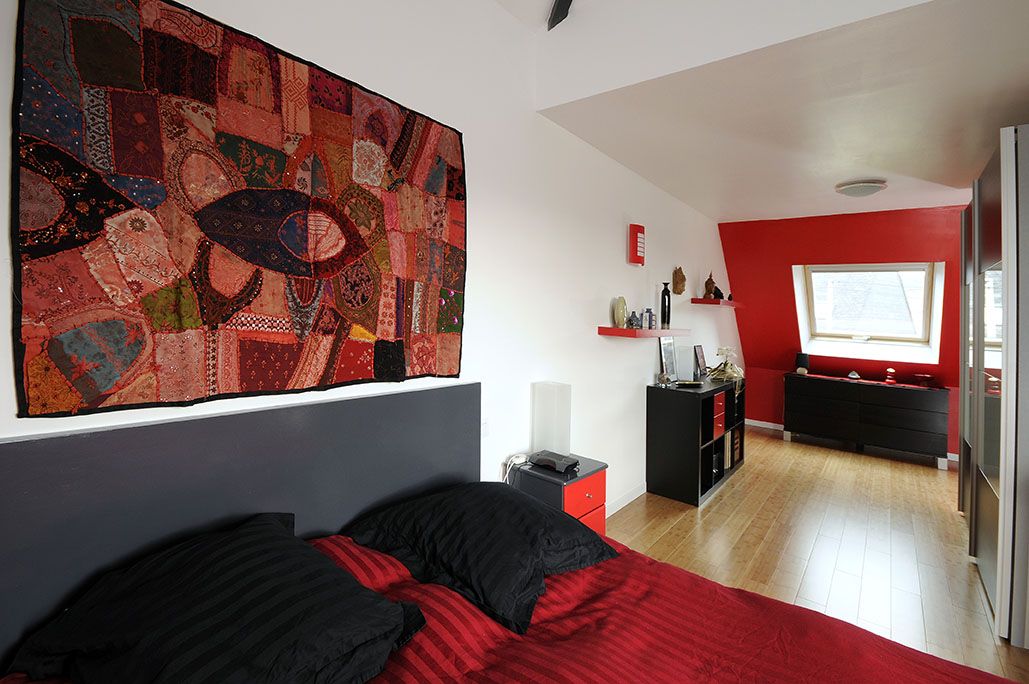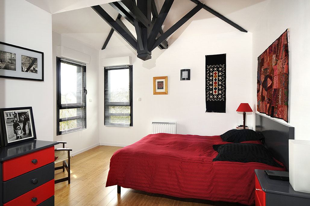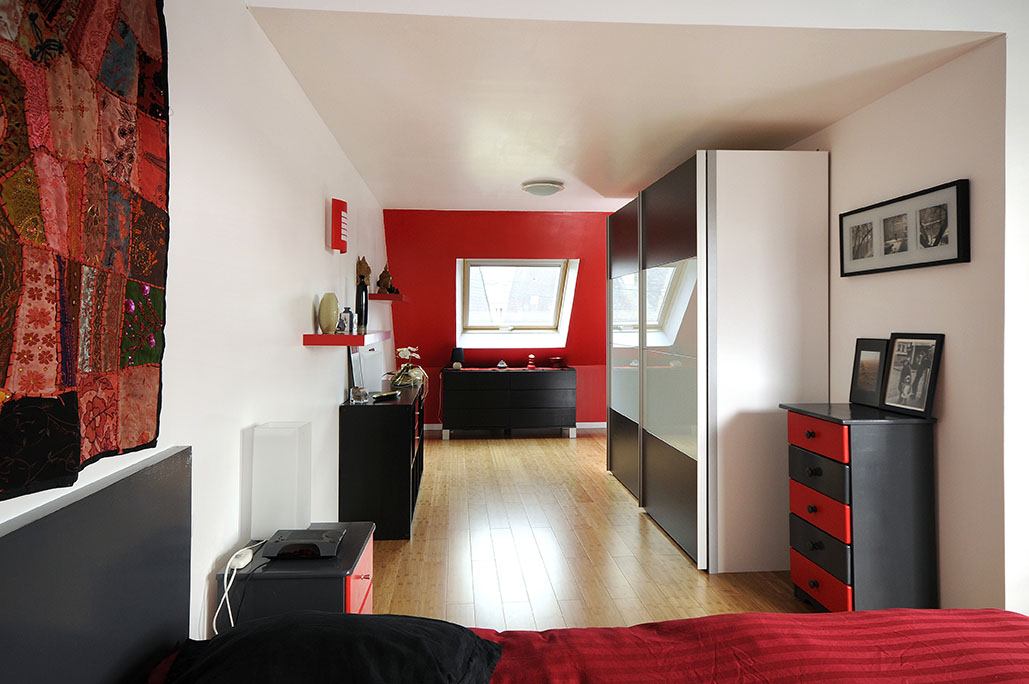 La surélévation en ossature bois au dessus du garage existant au Mans a permis de créer un espace supplémentaire destiné à l’aménagement d’une chambre spacieuse et lumineuse.