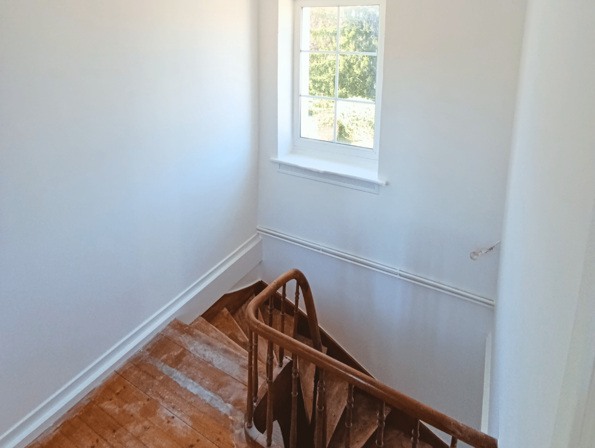 Les plafonds et boiseries de la maison ont été repeints, apportant un coup de frais à l’ensemble de l’habitation.