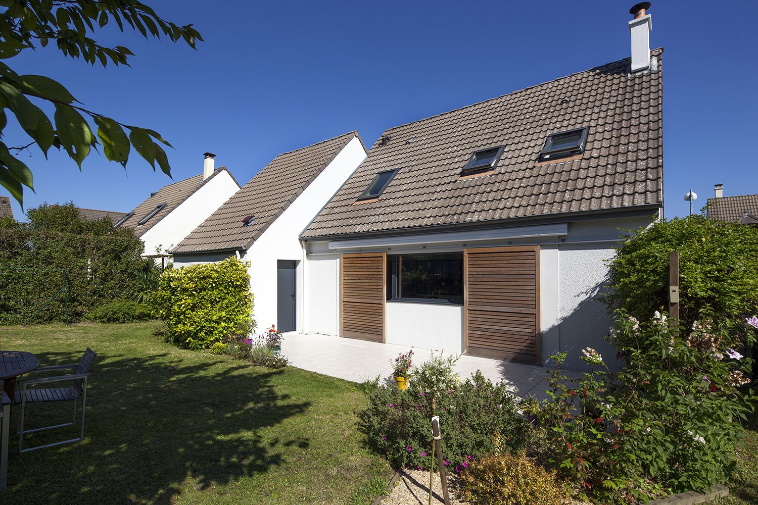 Notre projet consistait à remettre au goût du jour notre intérieur, tout en apportant de la lumière. Nous avions déjà quelques idées : nouvelles peintures, remplacement du carrelage, relooker notre cuisine actuelle, ouvrir notre intérieur sur le jardin…..