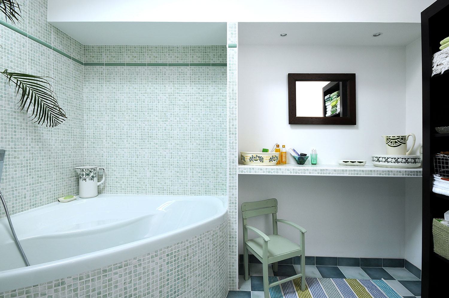 Lorsque nous avons acheté, il y a 9 ans, cette maison charentaise, nous avons très vite pensé ajouter une salle de bain à l’étage composé de 3 chambres. Nous souhaitions donc augmenter notre surface habitable tout en respectant le style architectural du bâti.