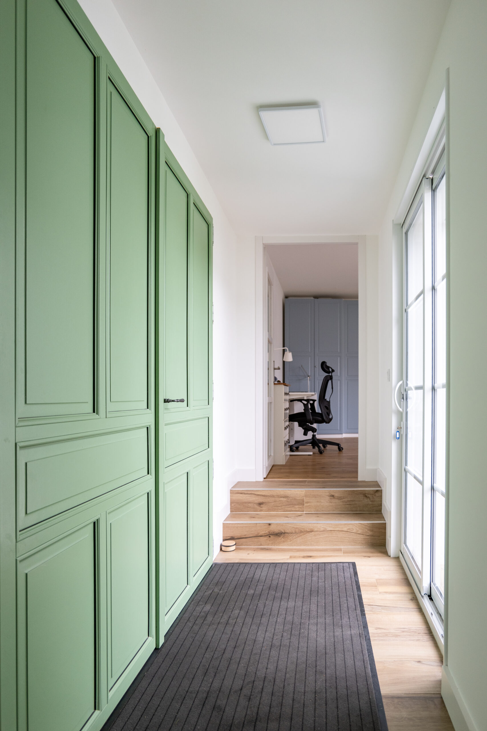 Nous avons d’abord retravaillé les plans avec notre dessinateur pour optimiser la redistribution des espaces de la maison existante de 200 m2 avec l’agrandissement du séjour et validé la conception de l’extension.