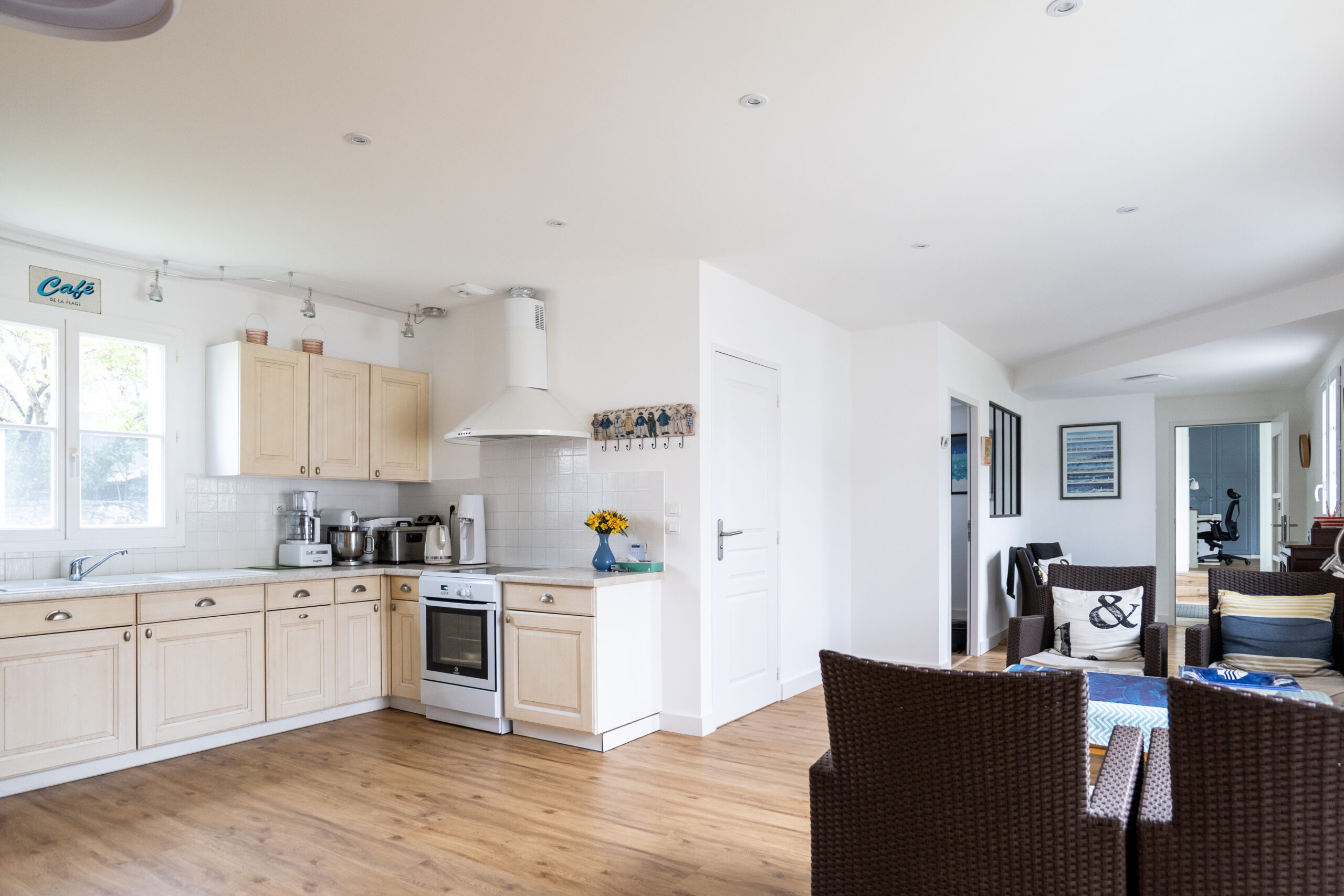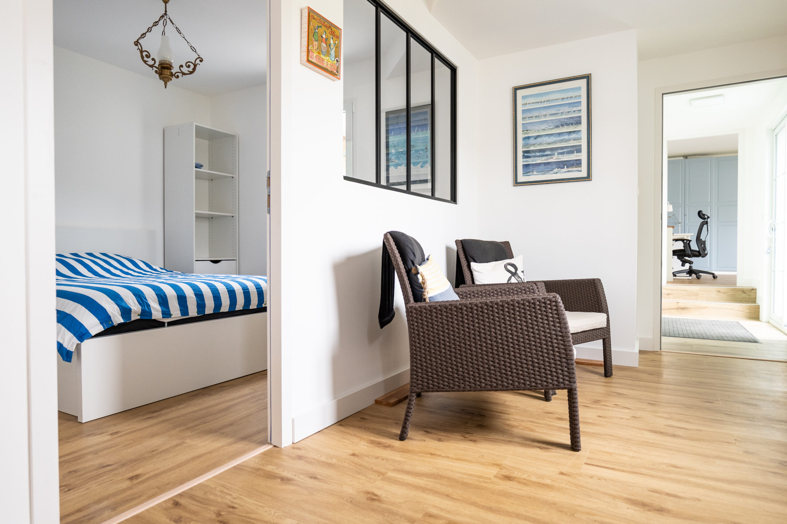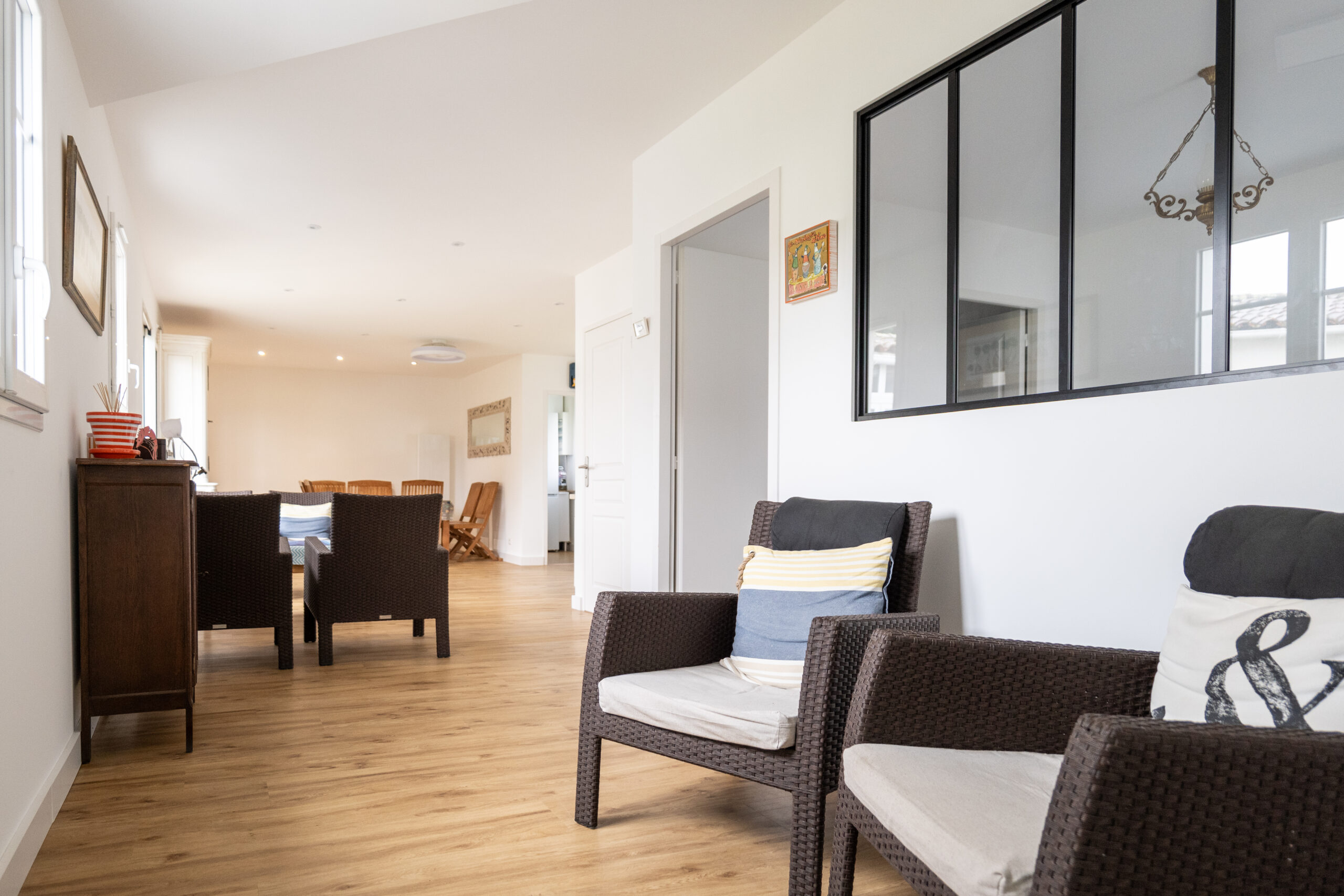 Nous sommes un couple de retraités, propriétaires d’une maison de vacances à Loix, sur l’île de Ré. Nous avions à cœur de pouvoir y accueillir toute notre grande famille (enfants et petits-enfants, soit une vingtaine de personnes) tout en préservant des espaces où chacun puisse profiter de moments d’intimité. Notre souhait était donc de réorganiser les espaces de vie pour rendre la maison plus conviviale et de créer une extension adaptée à nos besoins.