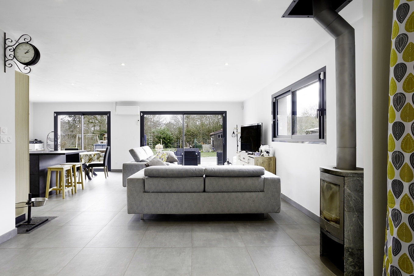 Pour répondre aux besoins du client, Camif Habitat a entrepris la création d’une extension spacieuse dédiée à la pièce de vie.