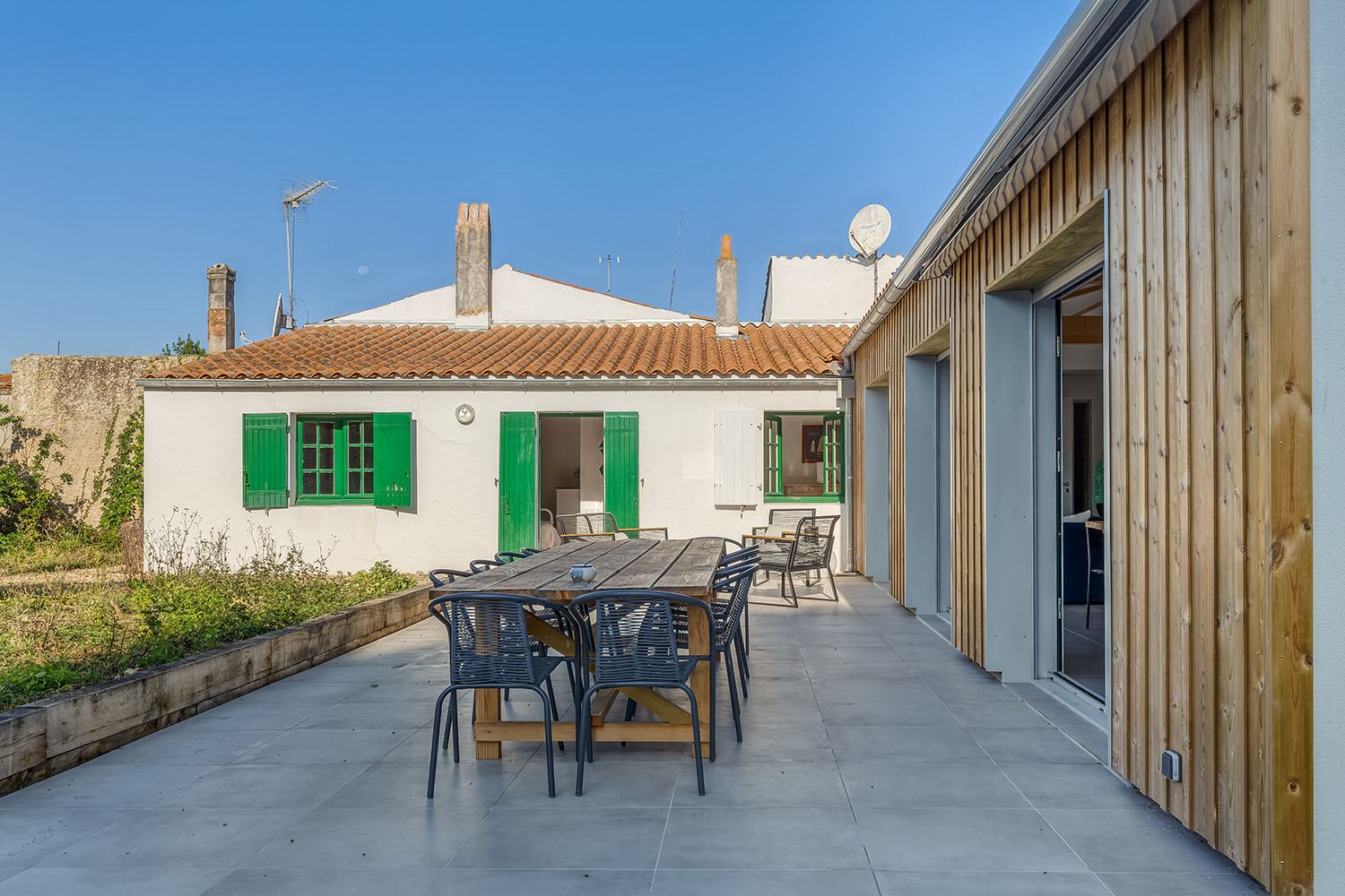 Pour répondre au besoin croissant d’espace de cette maison familiale sur l’île d’Oléron, nous avons créé une extension accueillant la cuisine, la salle à manger et le salon. Cette nouvelle partie de la maison se distingue par son bardage en bois, qui s’intègre harmonieusement dans le paysage naturel de la Charente-Maritime.