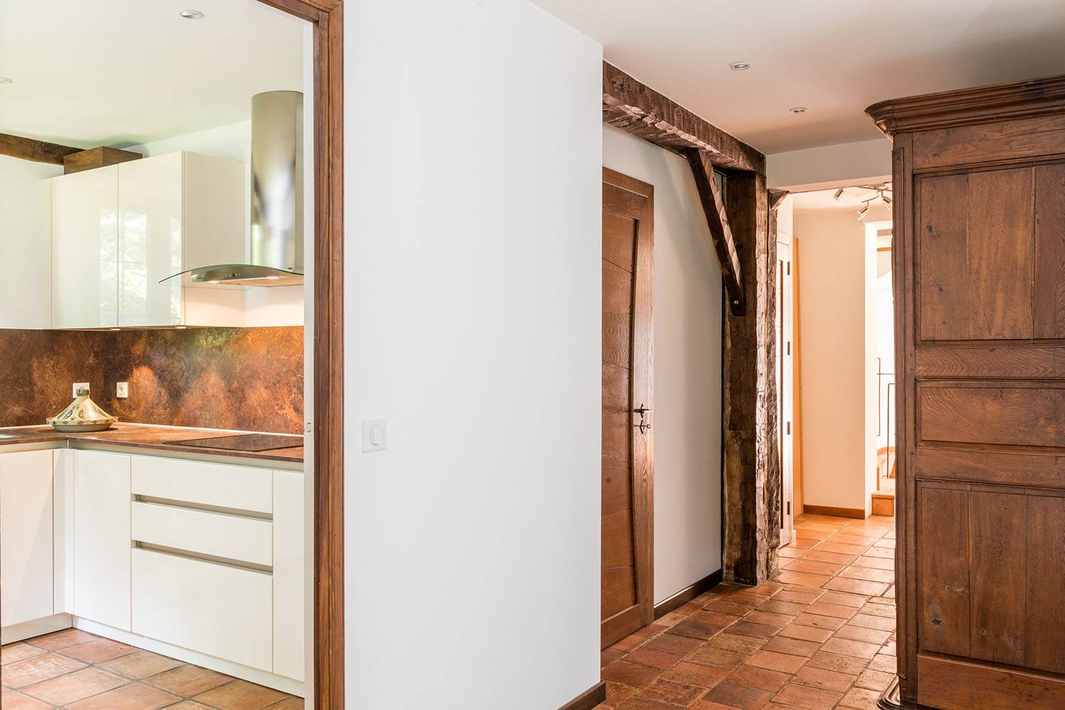Ensuite, dans la partie existante, il s’agissait de réaliser une opération « à tiroirs » en transformant la cuisine en entrée, et l’ancienne chambre d’amis en cuisine.
