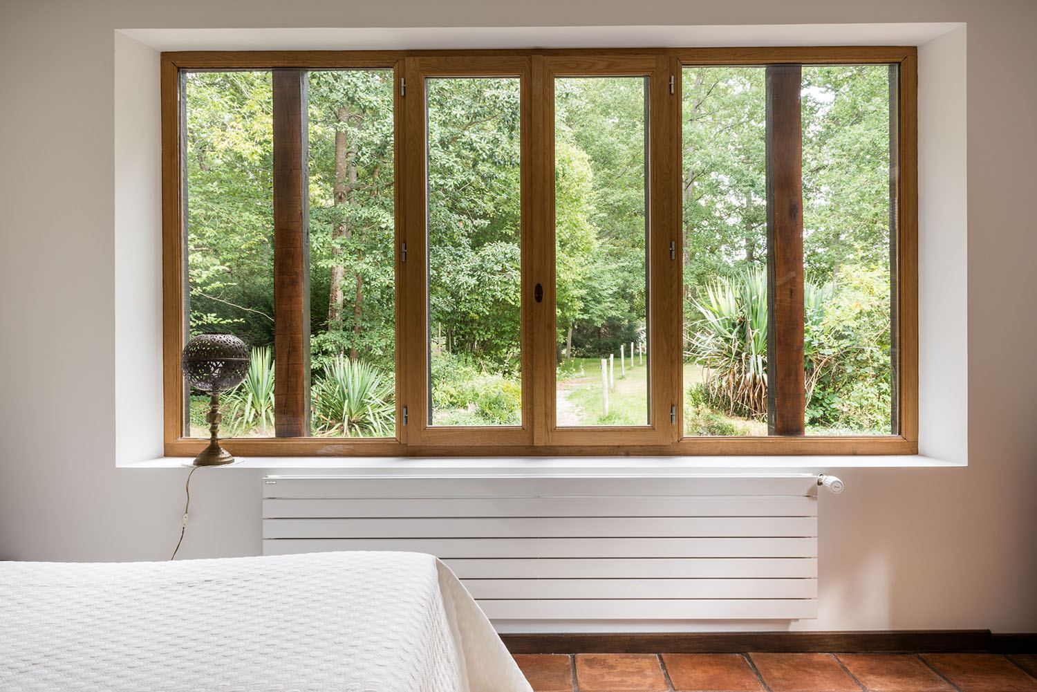 L’élément de liaison avec la partie existante a été conservé ce qui a permis de préserver la toiture existante et les deux lucarnes. Il n’a donc pas été possible de faire communiquer les deux étages, mais ce n’est pas gênant puisque l’étage de l’habitation existante est désormais utilisé occasionnellement.