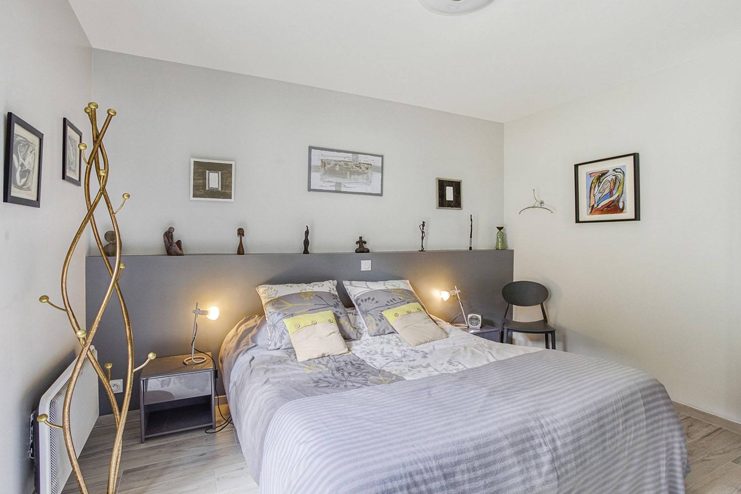 La chambre a été repensée pour offrir plus de confort et de rangement, avec une décoration moderne et apaisante.