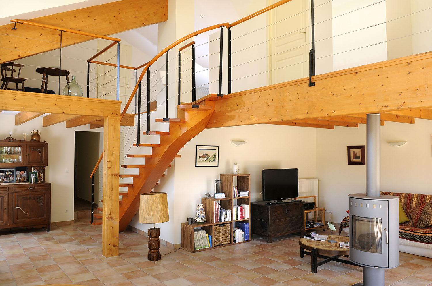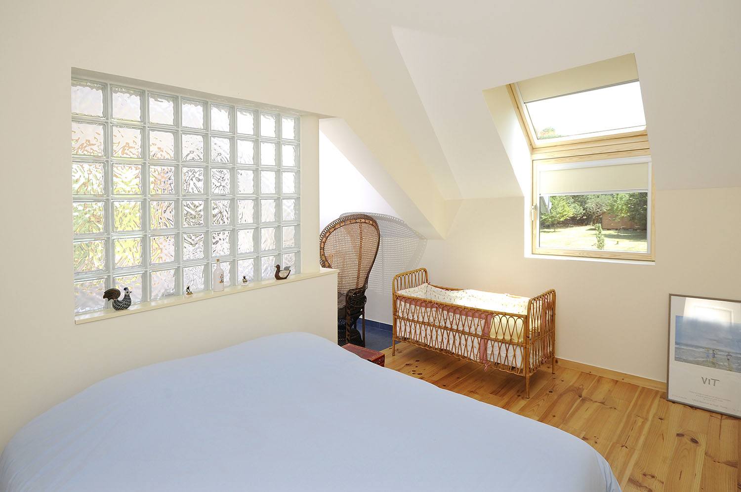 Un coin détente et lecture a également été aménagé dans le grenier du garage et permet l’accès aux combles de l’ancienne maison.