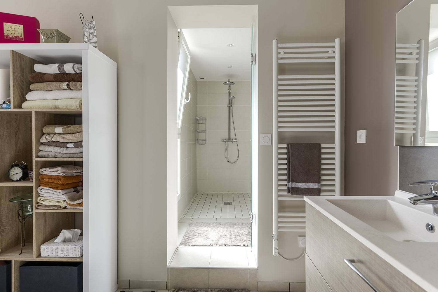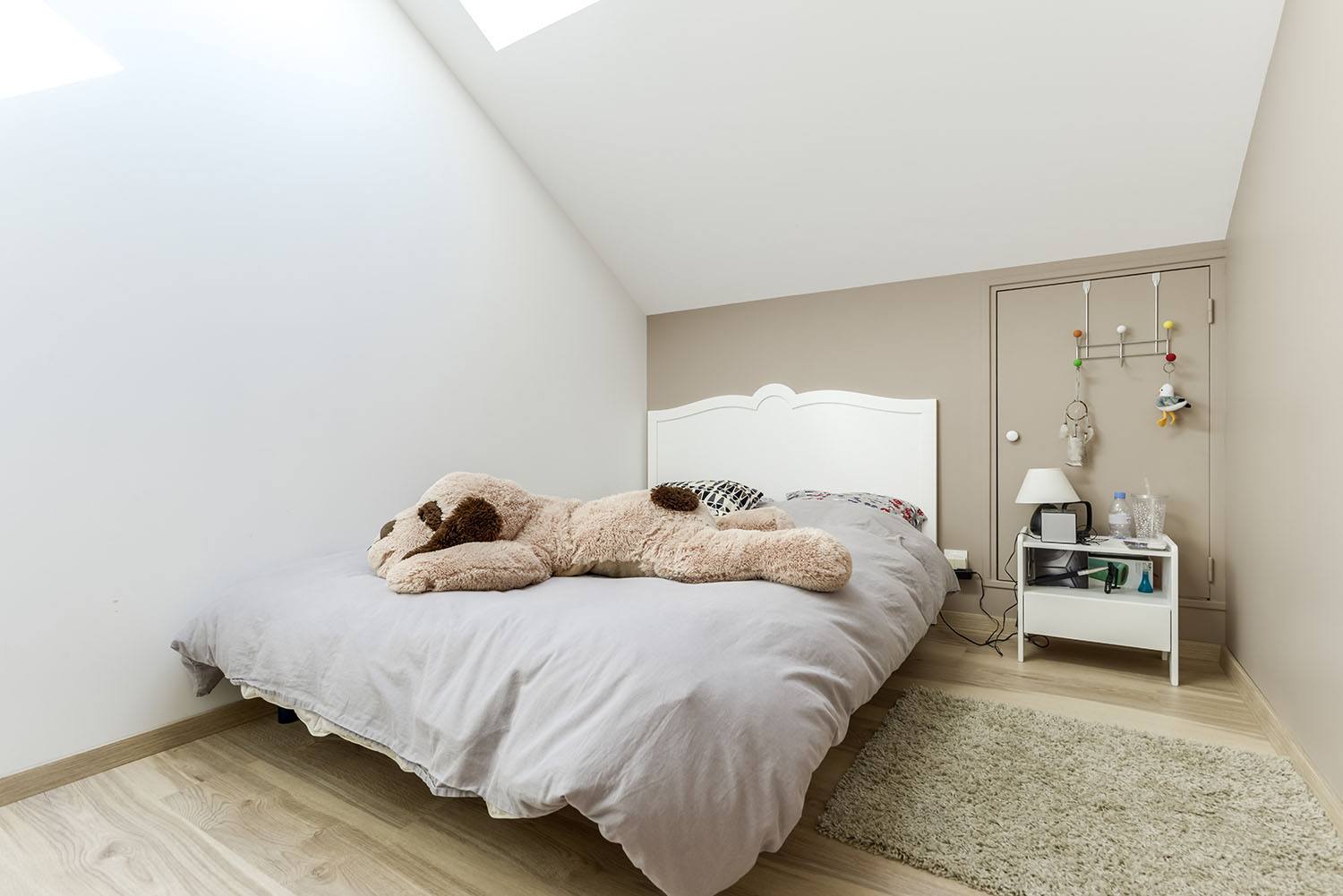 Lors de notre première rencontre avec la famille, la demande a été clairement exprimée : créer une chambre plus grande pour la fille cadette. Pour ce faire, la surélévation de maison s’imposait d’elle-même, tant l’avantage majeur de cette demeure résidait dans la possibilité de gagner un volume maximal en construisant sur la dalle de béton du garage préexistant.