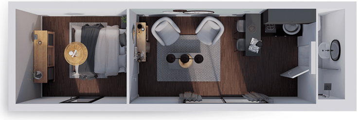 Avant l’arrivée du studio, seules des fondations légères sont nécessaires (plots bétons ou vis de fondation, généralement). Pas de gros terrassement à prévoir : l’impact sur votre jardin est minimal. Une fois le module posé et raccordé aux réseaux extérieurs (électricité, eau, évacuations) – des opérations réalisées par nos soins ou des partenaires qualifiés – votre studio est opérationnel immédiatement. Vous n’avez plus qu’à le décorer et l’aménager à votre goût, ou à le laisser tel quel s’il est déjà meublé.