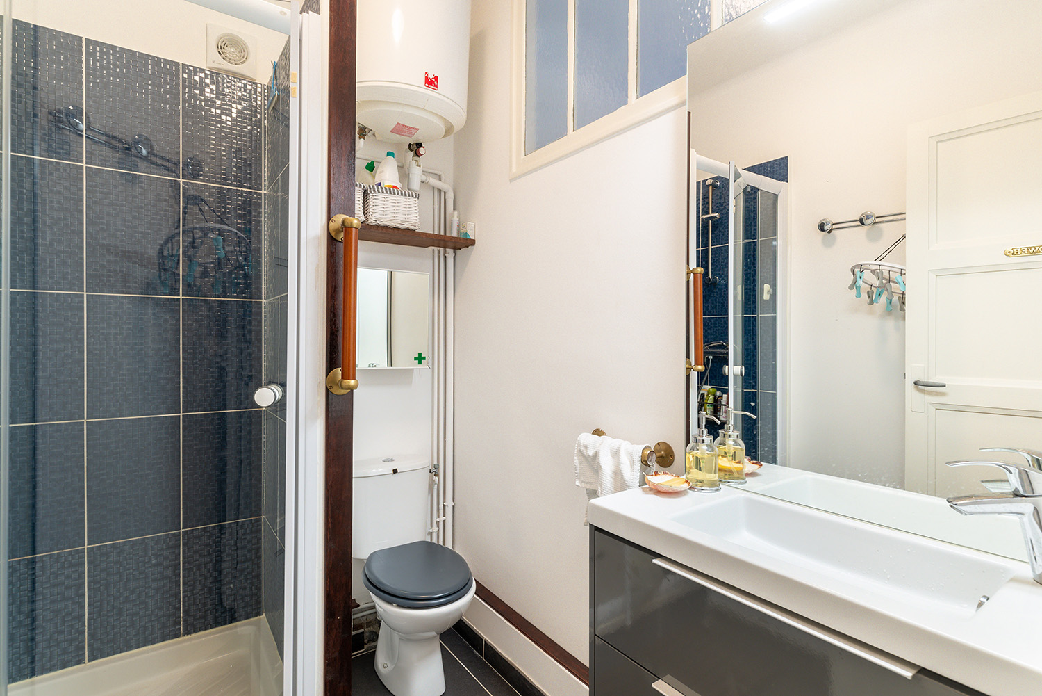Un sèche-serviette a été installé dans la salle de bain, accompagné d’une mise aux normes électrique. Ces améliorations contribuent à un confort accru et à une fonctionnalité optimisée de l’espace de la salle de bain.