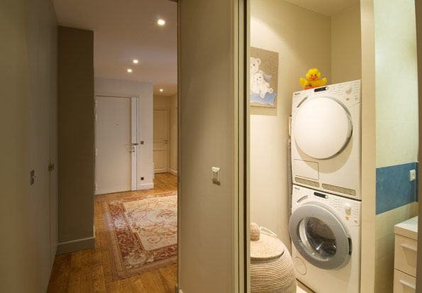 Dans le souci de répondre parfaitement à la demande du client, nous avons posé une porte coulissante pour séparer l’espace enfants et exploiter certains volumes pour créer des solutions rangement dans l’entrée et la suite parentale.