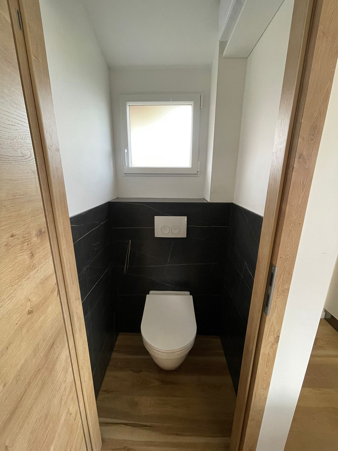 Nous avons complètement déposé l’existant de 22 m² pour reconstruire un nouveau chalet, sur la base de son soubassement, de 34,70 m², soit une extension de 12,70m².  Nous avons été aussi contraints par le règlement du SILA (Syndicat Intercommunal du lac d’Annecy) pour la gestion des eaux usées et des eaux de pluie.