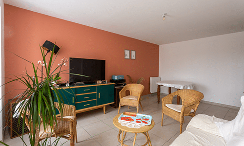 Plusieurs chambres ont également été rénovées avec un joli parquet et de la peinture blanche aux murs. Dans le salon, un mur a été peint dans une teinte ocre pour apporter de la chaleur à la pièce de vie.