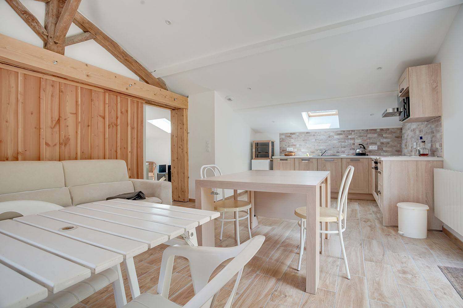 En mauvais état, cette ancienne grange nécessitait d’importants travaux de rénovation. La première étape de ce chantier a été l’assainissement des lieux, très vétustes. Puis, nos équipes se sont attelées au gros-œuvre : stabilisation de la charpente et des murs, rénovation de la toiture, ravalement de façade, création de nouvelles ouvertures, etc.