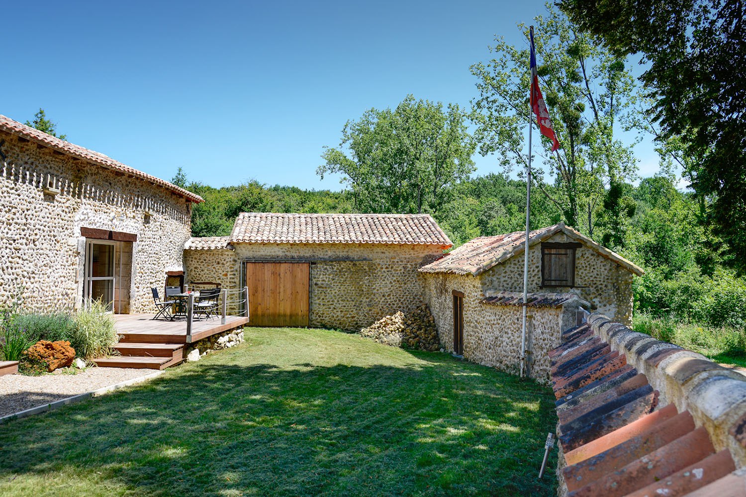 Au hasard de ses recherches, mon mari a trouvé cette ferme périgourdine qui nous a immédiatement séduits. Composée d’un corps de ferme principal, de deux granges, d’une étable, d’un four à pain et d’un chai, l’ensemble de ces bâtiments forme un domaine clos, au centre duquel se trouve une cour intérieure.