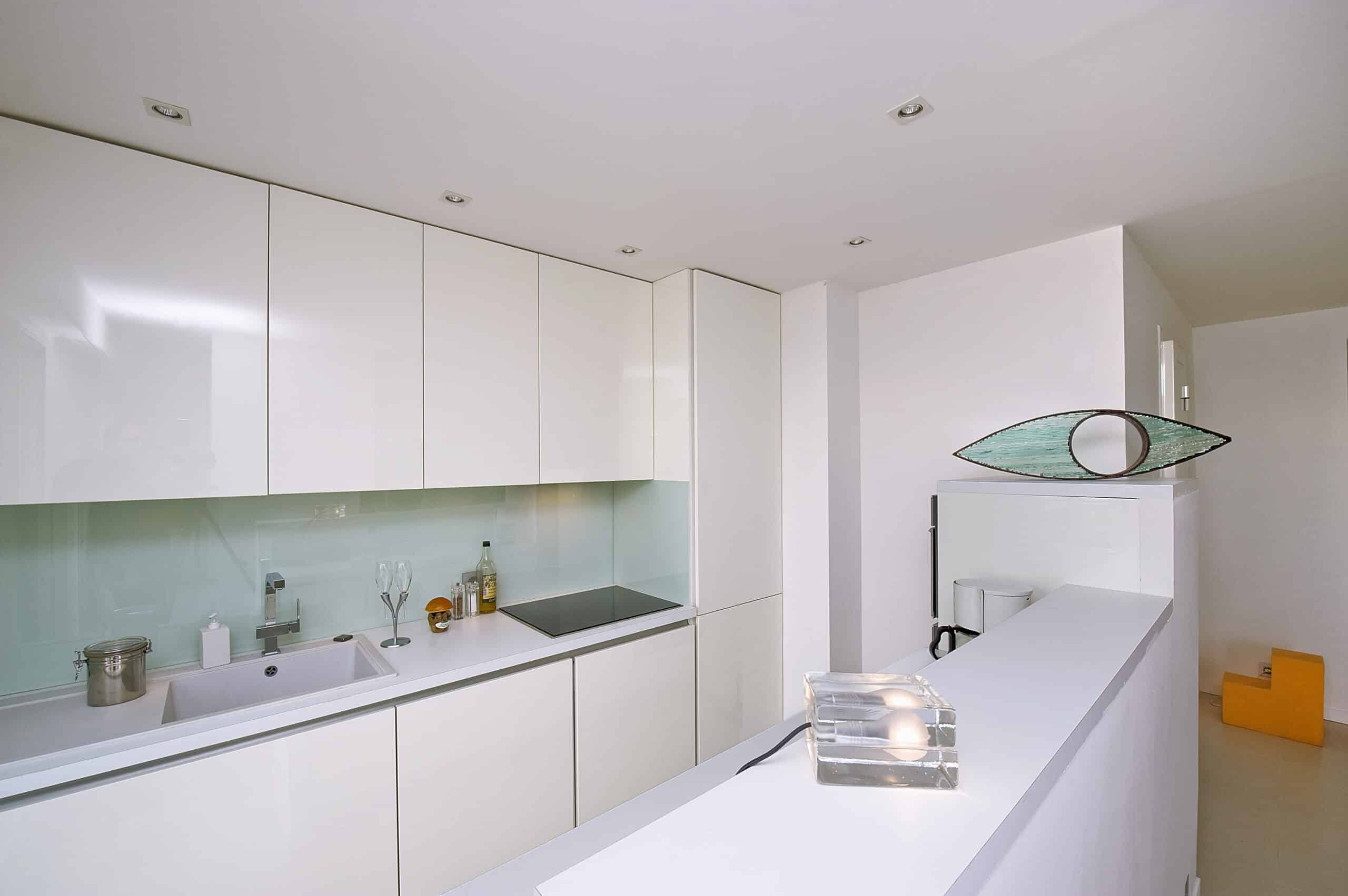 Murs et plafond participent à l’éclairage et à l’ambiance globale de la cuisine.