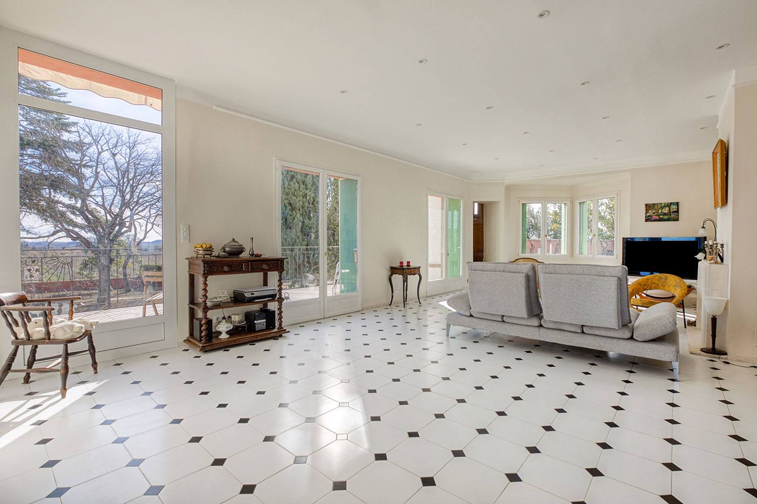À noter : à l’étage chaque baie vitrée ou fenêtre bénéficie d’un store banne monobloc qui se déploie, au gré des envies, pour profiter des beaux jours sur la terrasse sans être ébloui par le soleil.