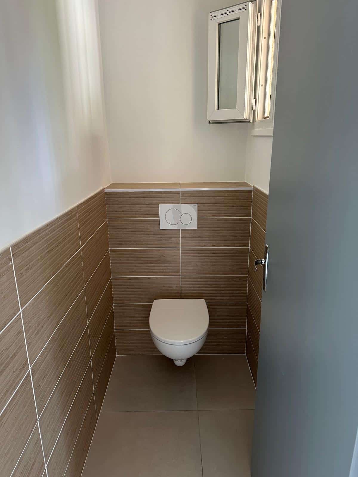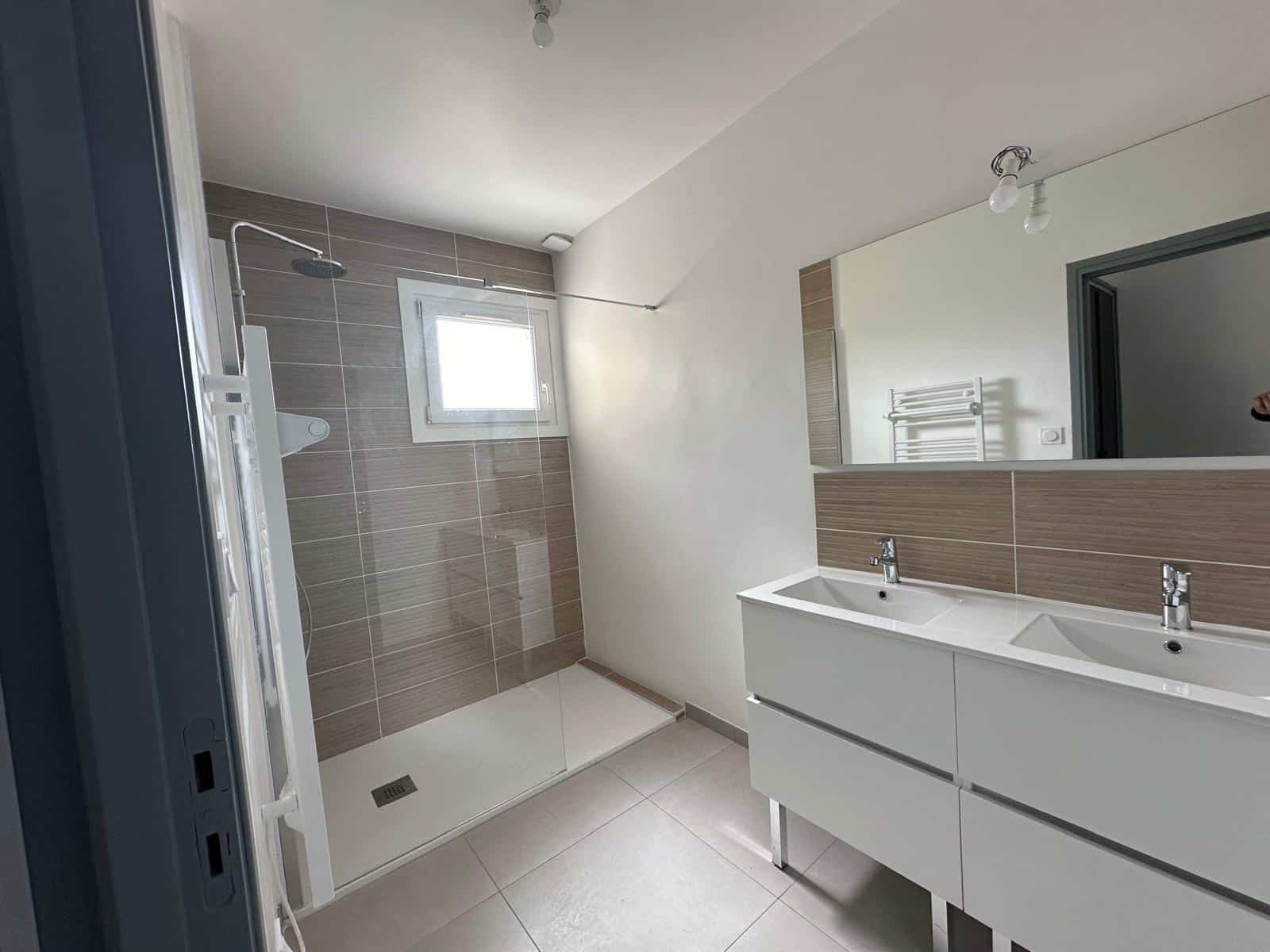 Dans toutes les pièces, les revêtements de sol ont été remplacés et les peintures, refaites. Nous avons également rénové entièrement la salle de bain et mis en place un dressing et des placards dans les chambres.