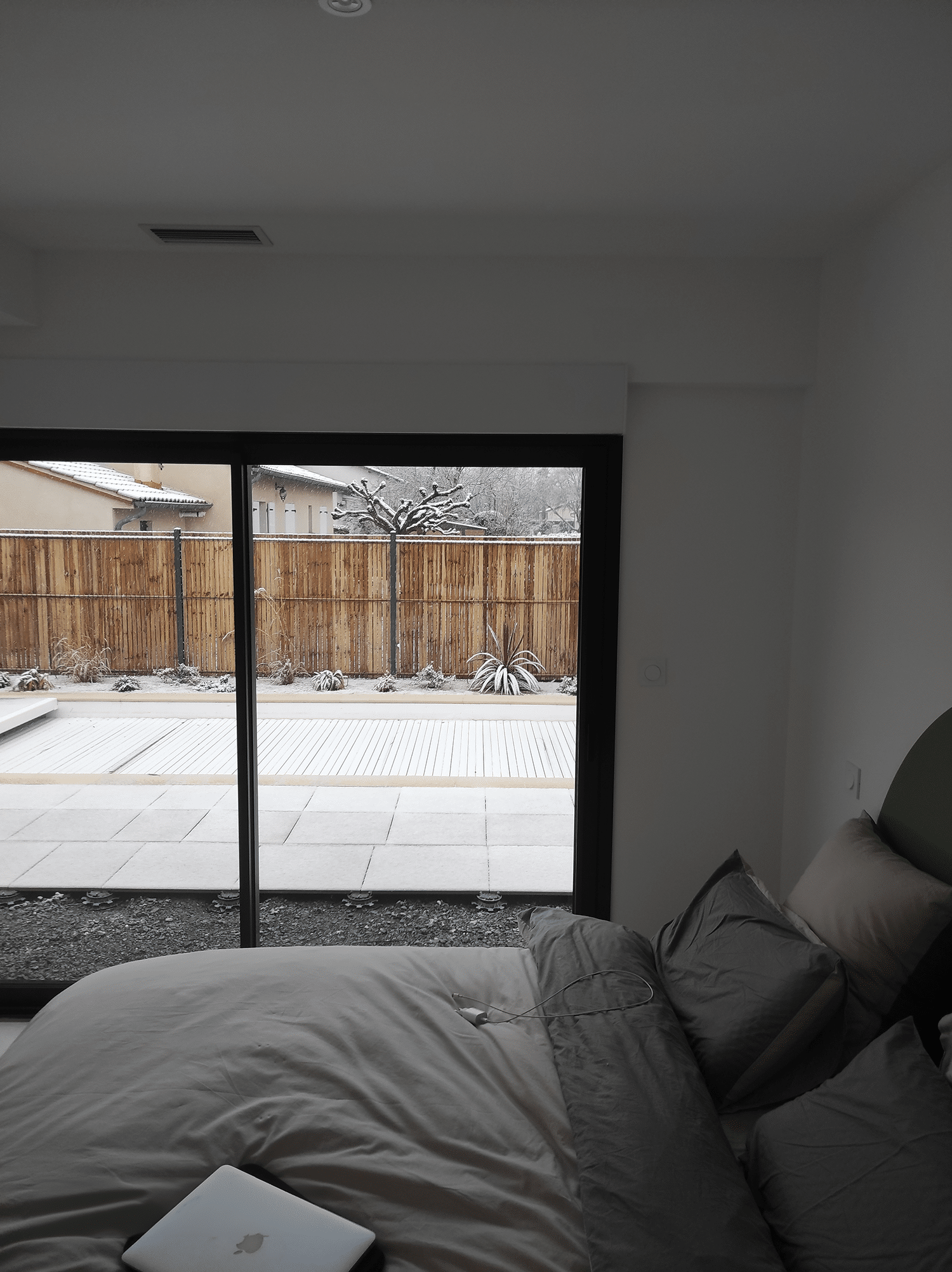 Afin d’apporter plus de lumière à cette maison, nous avons agrandi les baies vitrées de la pièce de vie et de la nouvelle chambre. Aussi, les menuiseries extérieures ont été remplacées.