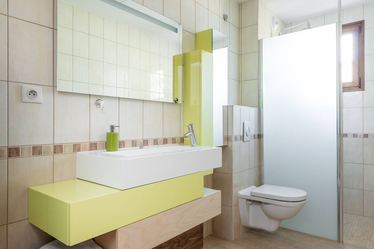La salle de bains existante a été totalement réinterprétée afin de la rendre plus fonctionnelle et plus moderne.