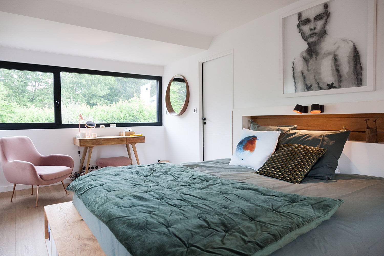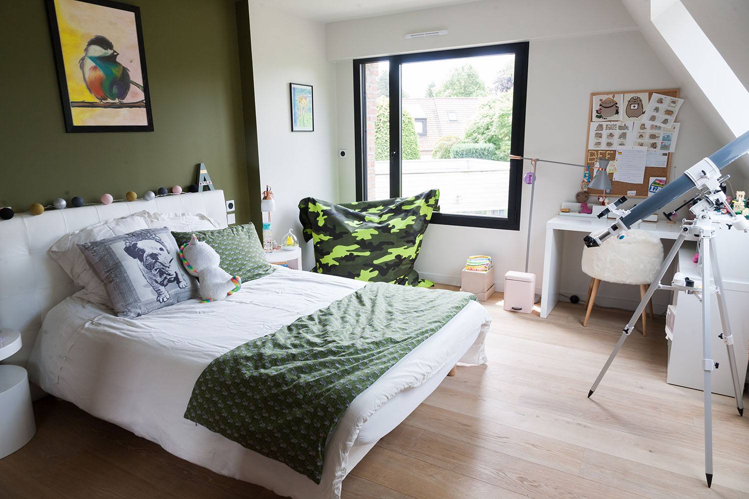 Un atelier créatif a été aménagé, pensé pour recevoir lumière naturelle et rangement adapté. Un coin bureau fonctionnel a été intégré à l’étage, pour faciliter le télétravail. L’espace enfants a également été repensé : les volumes ont été modifiés pour créer un coin jeux confortable, avec du rangement sur mesure.