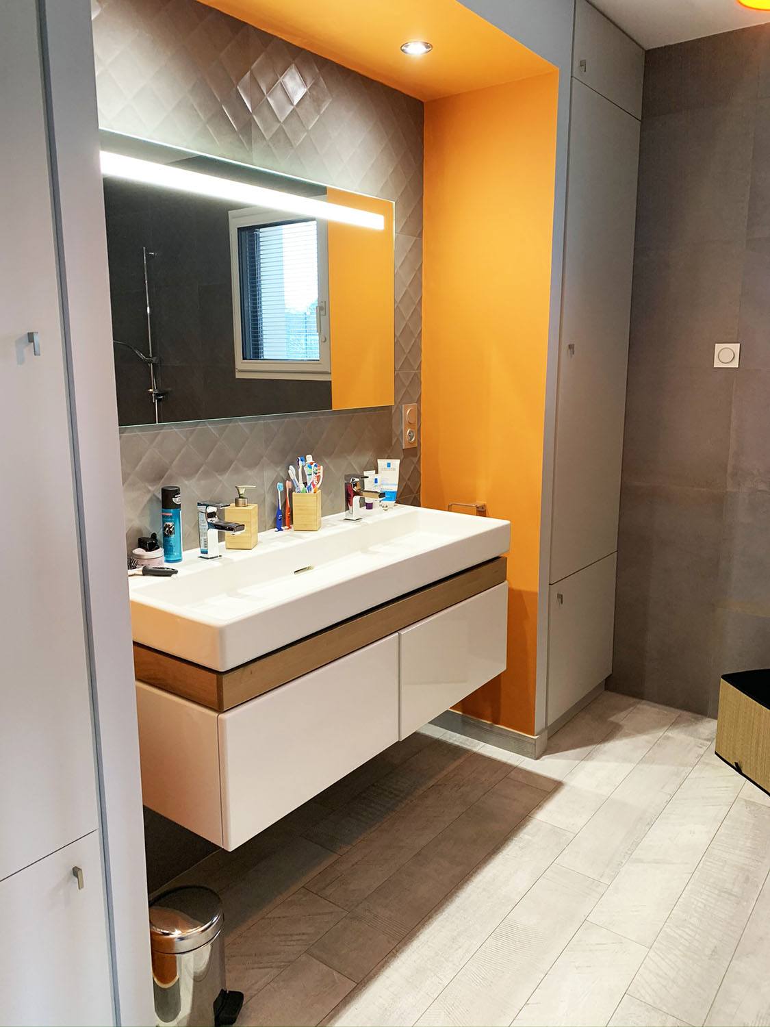 Nous avons acheté cette maison en 2000, l’année de sa construction. Même si au fil des années la décoration et l’organisation intérieure de celle-ci ne nous plaisait plus, nous n’avions jamais franchi le cap des travaux. Nous avons sauté le pas de la rénovation de cette maison de ville située à Niort à la suite de la demande de nos enfants qui souhaitaient avoir chacun leur espace. L’aménagement d’une quatrième chambre fut l’occasion idéale pour réorganiser les pièces de vie, donner un souffle nouveau à la salle de bain et repenser l’isolation.