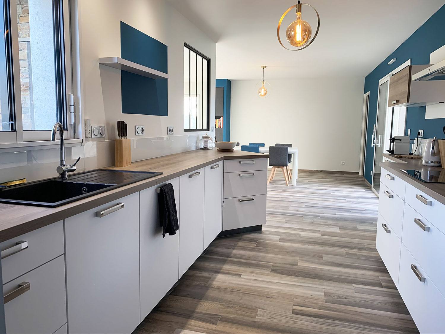 Dans un premier temps, nous avons dû réaliser un important travail de réflexion avec nos clients pour optimiser l’espace au maximum et concevoir des plans adaptés aux besoins et aux aspirations de toute la famille. Pour rappel, l’objectif de ces travaux de rénovation de maison de ville à Niort était de réorganiser les espaces de vie de manière à créer une nouvelle chambre.