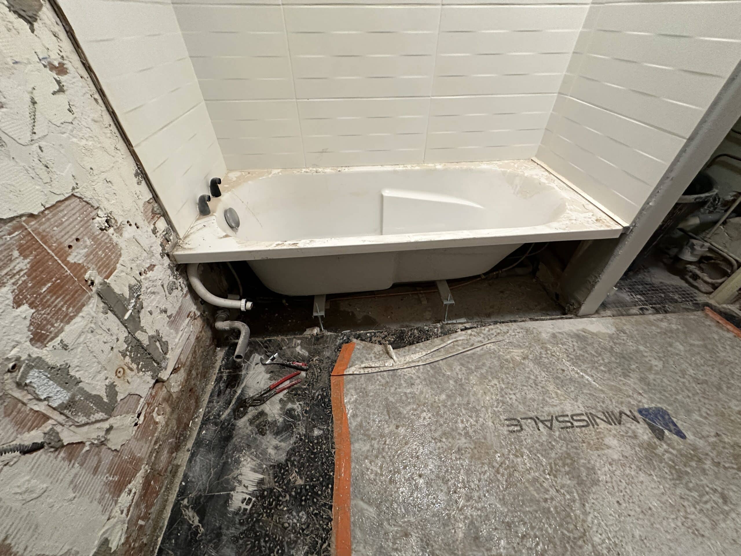 Pour finaliser l’ensemble, les murs ont été repris, les faïences et les peintures soigneusement posées, créant une salle de bain moderne et fonctionnelle, parfaitement adaptée à l’usage quotidien des futurs occupants.
